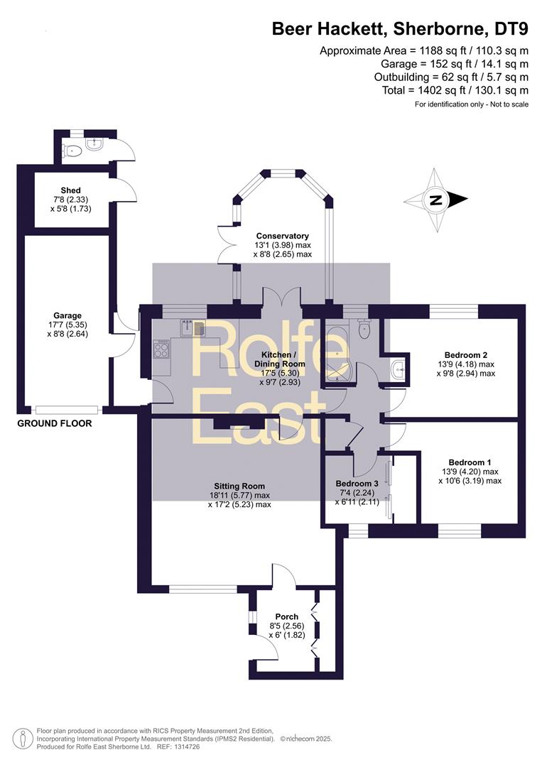 ‘Stoneleigh’ is a simply lovely, mature, detached bungalow situated in a very sought-after residential cul-de-sac address in the heart of this popular Dorset village. The property stands in a generous level plot and lovely manicured gardens of 0.14 acres approximately. The rear garden is particularly pretty and boasts a sunny westerly aspect and good privacy. The bungalow comes with a single garage / workshop, single carport and driveway parking for two to three cars. There is a large front garden giving a good depth from the cul-de-sac, that could be converted to more driveway parking if required, subject to the necessary planning permission. The property boasts excellent levels of natural light from a sunny east-to-west aspect plus large windows. There are views of the pretty parish church at the front. It is heated by oil-fired radiator central heating, an open fireplace and benefits from uPVC double glazing. It is in very good decorative condition throughout. The well-arranged, deceptively spacious accommodation (1402 square feet) comprises entrance reception hall, large sitting room with cut Hamstone open fireplace, kitchen / dining room, conservatory, undercover side area, inner hall, three generous bedrooms and a family shower room. The property has countryside and village centre walks from nearby the front door – ideal as you do not need to put the children or the dogs in the car! The hamlet of Beer Hackett has a church at its centre. The nearby village of Yetminster is an incredibly pretty and popular Dorset village enjoying a vibrant community. The properties in Yetminster are built almost entirely using an attractive natural stone. As well as the local store and a 16th century village pub, Yetminster possesses a variety of village amenities and services, including a GP surgery, a hairdressers, coffee shops, deli and a sports/social club with playing grounds and tennis courts. It is a very short drive to the stunning, historic town centre of Sherborne.