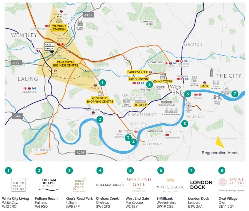 Two Bedroom Apartments starting from £545,000. Grand Union is a vibrant canal side development. Located in Wembley (TFL zone 3), with great connections into the city and the West End. The regeneration project opened in 2022 with the goal of being fully completed in 2037. There will be a total of 3,350 homes, with 14 acres of space dedicated to landscaping. Grand Union is a resort-lifestyle development, which means you will be surrounded by luxuries like a canal side location, waterside views, lovely walkways with wildflowers, meadows leading up to a waterfall that leads to your own private environment – it’s not just anything! There will also be an assortment of such waterside piazza with cafes, bars, restaurants, 10-pin bowling alleys, on-site supermarket, and a community centre. Grand Union is truly the place to live, work and relax.
