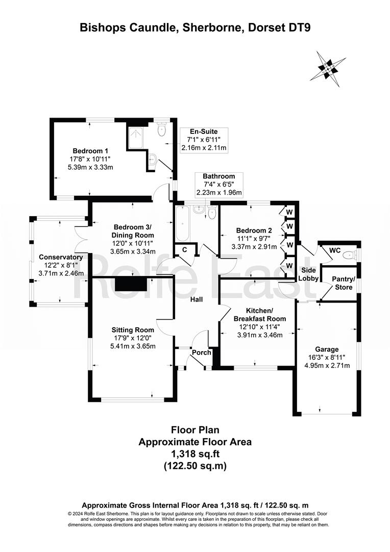 ‘Leathams’ is a spacious (1318 square feet), detached, three bedroom bungalow situated in a highly sought-after rural position within walking distance of the village centre of Bishops Caundle and only a short drive from the town centre of Sherborne and mainline railway station to London Waterloo. The property boasts a generous level plot and enclosed front, side and rear gardens extending to just under a quarter of an acre (0.20 acres approximately) with the rear backing directly on to fields, attached single garage and driveway parking for four to five cars. The property is enhanced by oil fired radiator central heating and double glazing. The spacious accommodation boasts good levels of natural light and enjoys fantastic countryside views at the front and rear. It comprises entrance porch, entrance reception hall, sitting room, dining room/bedroom three, kitchen/breakfast room, conservatory, master bedroom with en-suite shower room, second double bedroom and a family bathroom. There is also a rear lobby, freezer room, separate WC and internal access to the garage. The property offers tremendous scope for extension at the side and rear, subject to the necessary planning permission. It is located on the edge of the popular Dorset village of Bishops Caundle. There are fabulous countryside walks from nearby the front door. Bishops Caundle is a popular, small village on an elevated ridge overlooking Blackmore Vale countryside. There is the historic village church and the popular White Hart public house. A short walk away is a village shop and post office, primary school, village hall and garage with shop. The town centre of Sherborne is a short drive away. Sherborne boasts a superb boutique high street with coffee shops, restaurants, Waitrose store and independent shops plus the breath-taking Abbey, Almshouses and Sherborne’s world famous private schools.