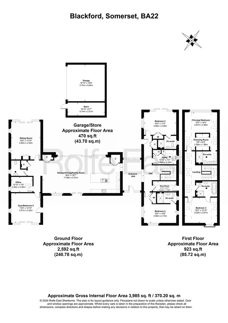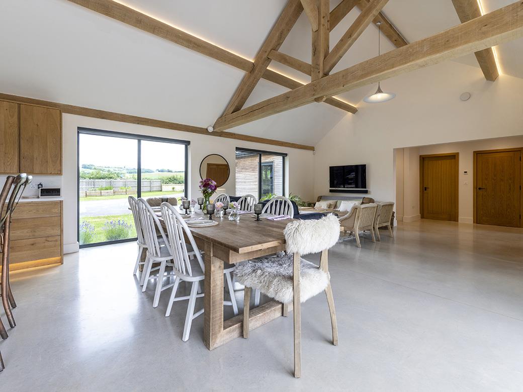 BEST VILLAGE IN THE AREA! ECO HOUSE BAND ‘A’ RATING ON EPC! OVER HALF AN ACRE PLOT AND GARDENS! STUNNING RURAL VIEWS. ‘The Granary’ is a simply breath-taking, huge (3985 square feet), ultra-modern, eco home built in 2021 and occupying a beautiful level plot and gardens extending to over half an acre (0.54 acres approximately) with stunning rural views. The property boasts the latest in building technology with an air-sourced heat pump system powering under floor heating throughout plus extensive solar panels, insulation and pressurized hot water system producing a very rare band A on the EPC rating. The property is situated on the rural edge of one of the best and most sought-after, pretty villages on the borders of Somerset and Dorset among some amazing hills and countryside walks. Although the property gives you an amazing feeling of tranquillity and being ‘away from it all’, this home is only a very short drive to the A303 trunk road linking London to the South West and from two mainline railway stations to London – the fastest being circa 1 hour 44 minutes to Paddington. The property is also only a short drive to some fantastic village pubs, shops and the town centre of the historic town of Sherborne. This home is complimented by a sweeping driveway approach with double automatic driveway gates opening on to a parking area for 10 cars or more. This driveway leads to a detached double carport with attached garden store. The accommodation is vast, flexible and flooded with natural light from a sunny east-to-west aspect and huge feature windows. It comprises generous entrance reception hall, huge open-plan kitchen family room, sitting room, office, gymnasium / double bedroom five, boot room, utility room and ground floor WC / cloakroom. There are two further large double bedrooms on the ground floor – both with en-suite shower rooms. On the first floor, there is a large landing area, impressive master suite with double bedroom area, dressing area and en-suite.