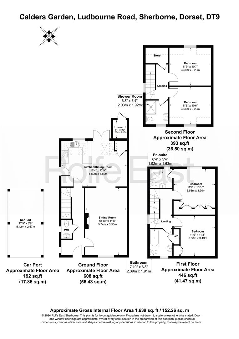 VACANT – NO FURTHER CHAIN. ‘1 Calders Garden’ is a simply lovely, substantial, modern, period-style, four double bedroom, semi-detached town house situated in an exclusive, ‘tucked away’ courtyard address of five similar properties in the beating heart of this picturesque, sought-after Dorset town off one of the best addresses in the town – South Street. This rare house is a very short, level walk to Sherborne town centre and mainline railway station to London Waterloo. The house has a level rear courtyard garden arranged for low maintenance purposes and enjoying a good degree of privacy and a sunny southerly aspect. Quite the suntrap! There is allocated driveway parking for one car leading to a large, single carport. The house benefit from gas-fired radiator central heating and period-style sash window double glazing. The deceptively spacious accommodation extends to 1639 square feet and is arranged over three storeys, enjoying good levels of natural light. It comprises entrance porch, entrance reception hall, sitting room with large entrance leading in to open-plan kitchen / dining room (full through-measurement of 33′ 3 maximum) and ground floor cloakroom / WC. On the first floor is a landing area, master double bedroom with en-suite shower room, second double bedroom and a family bathroom. On the second floor, there is another landing area, two further double bedrooms, a shower room / WC and store room. It is a very short, level walk to the historic town of Sherborne with its coveted high street, buzzing, popular out-and-about culture, boutique stores, organic bakeries, coffee shops, restaurants, gastro-pubs and farmers market. Sherborne also boasts the breath-taking Sherborne Abbey building, Alms Houses and world-famous Sherborne private schools. Sherborne has recently won the award for the best place to live in the South West by The Times 2024. It also boasts ‘The Sherborne’ – a top class, recently opened arts and conference centre plus superb restaurant.