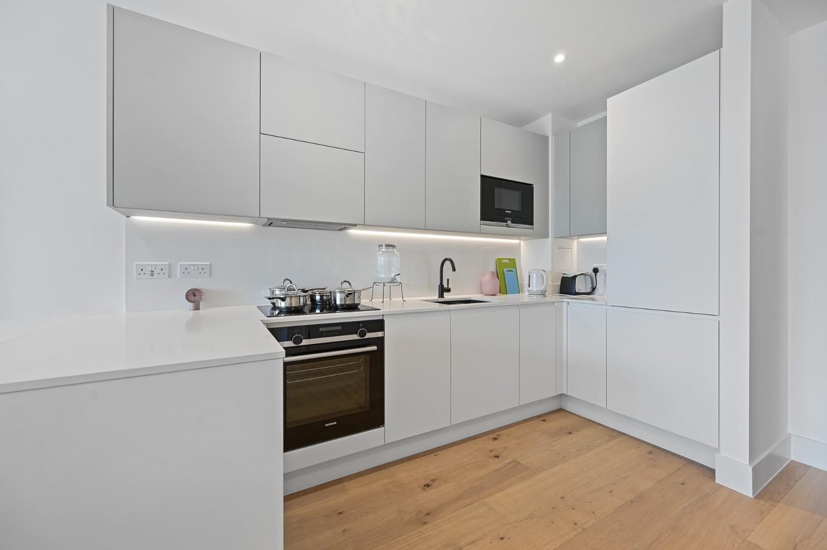 The property comprises welcoming and large open plan living with plenty of space for a lounge area, dining area and a fully integrated high spec kitchen. This room leads out to the private balcony with wonderful views. There is also a double bedroom, and a modern bathroom which completes the lovely accommodation. The building has lifts to all floors and all residents benefit from the many luxury on site amenities including a concierge, residents’ lounge, fully equipped gym, cinema room, work zones and residents’ podium gardens.