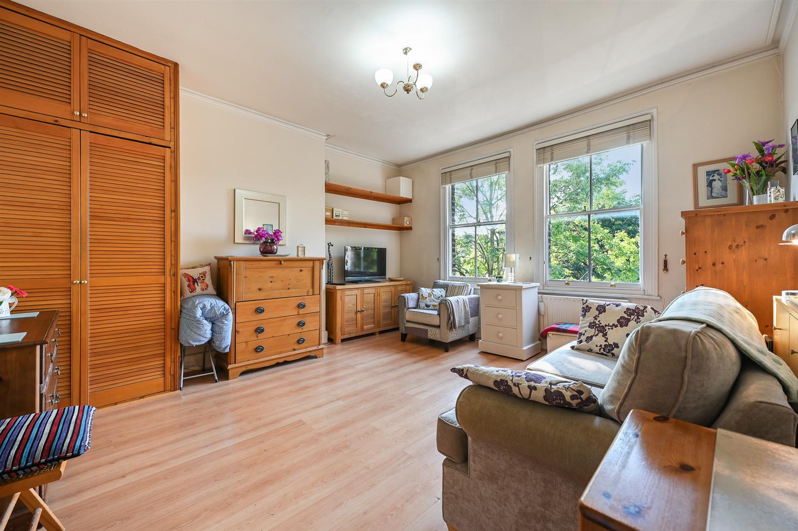 A most conveniently located studio apartment presented in a good condition throughout and benefitting from no upper chain. Set on the top floor of a handsome period building the flat features large westerly facing sash windows giving great afternoon sun, a separate kitchen from the studio room and a bathroom with a white suite.
