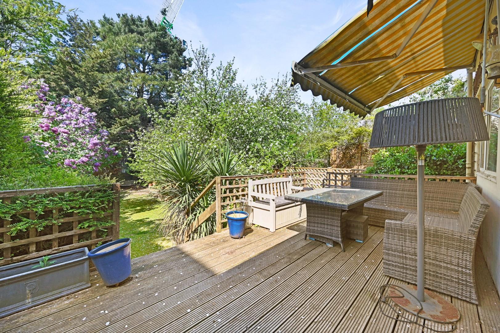 To the rear, the property enjoys a superb west-facing private garden extending to approximately 78ft. Mature, secluded, and beautifully landscaped, it features an impressive, raised decking area, perfect for dining and entertaining, while enjoying the afternoon and evening sun.