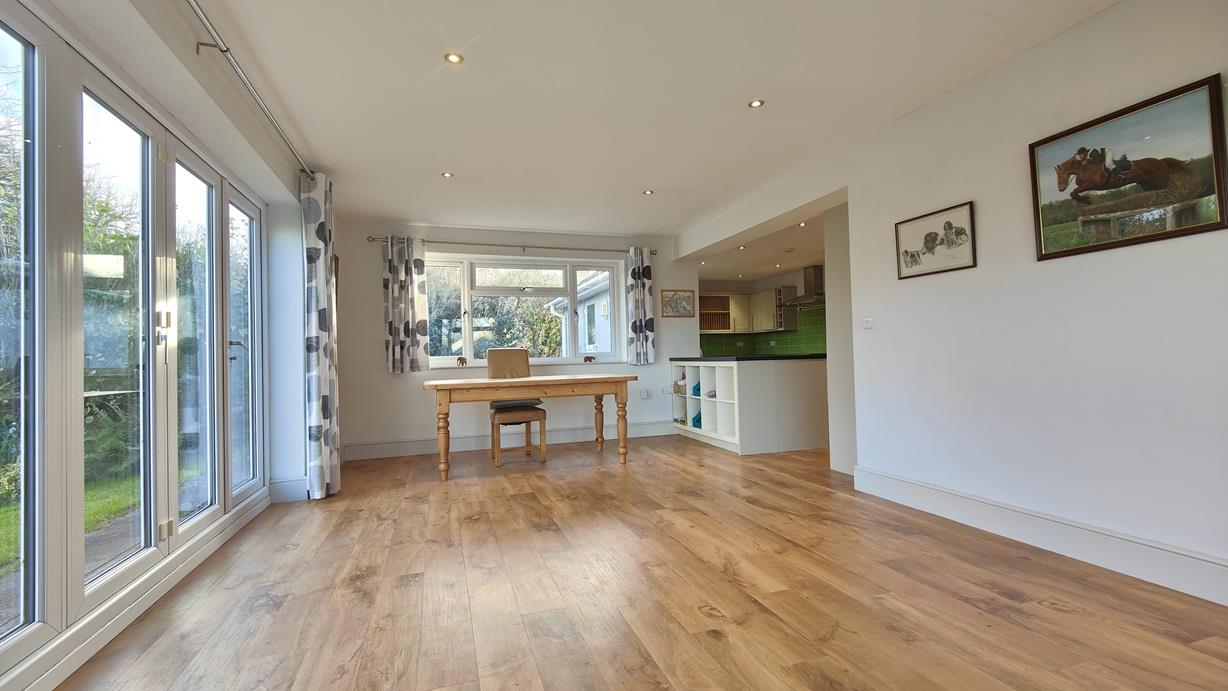 NO FURTHER CHAIN! ‘Tresillian’ is a substantial (1632 square feet), extended three double bedroom detached bungalow situated in a choice, semi-rural position in the pretty Hamlet of Hermitage – between the towns of Sherborne and Dorchester. This spacious property stands in a level plot and gardens of approximately a quarter of an acre (0.26 acres). There is an enclosed driveway area providing off road parking for four to five cars leading to an attached single garage. The property offers oil-fired radiator central heating, some underfloor heating and uPVC double glazing. The bungalow has been extended to offer a large, contemporary, open-plan kitchen / family room area with uPVC double glazed bi-folding doors opening on to the rear garden. There is also a formal, ‘winter’ sitting room with cast iron log burning stove. The property offers scope for further extension with two side garden areas, subject to the necessary planning permission. There are lovely country lane walks from the front door. The spacious, flexible accommodation enjoys a good level of natural light from large windows and dual aspects and comprises large entrance reception hall, sitting room, kitchen leading into family room, utility room, master bedroom with en-suite shower room, two further double bedrooms and a family bathroom. The property is situated in a top, semi-rural address only a short drive to the centre of the picturesque Abbey town of Sherborne with a coveted boutique high street and bustling out and about culture, markets, cafes, Waitrose store, restaurants, world famous private schools, breath-taking abbey building and mainline railway station making London Waterloo in just over two hours. It is also a short drive to the popular Dorset town of Dorchester. Sherborne has also recently won the award for the best place to live in the South West by The Times 2024. It also boasts ‘The Sherborne’ – a top class, recently opened arts and conference centre plus restaurant. VACANT.