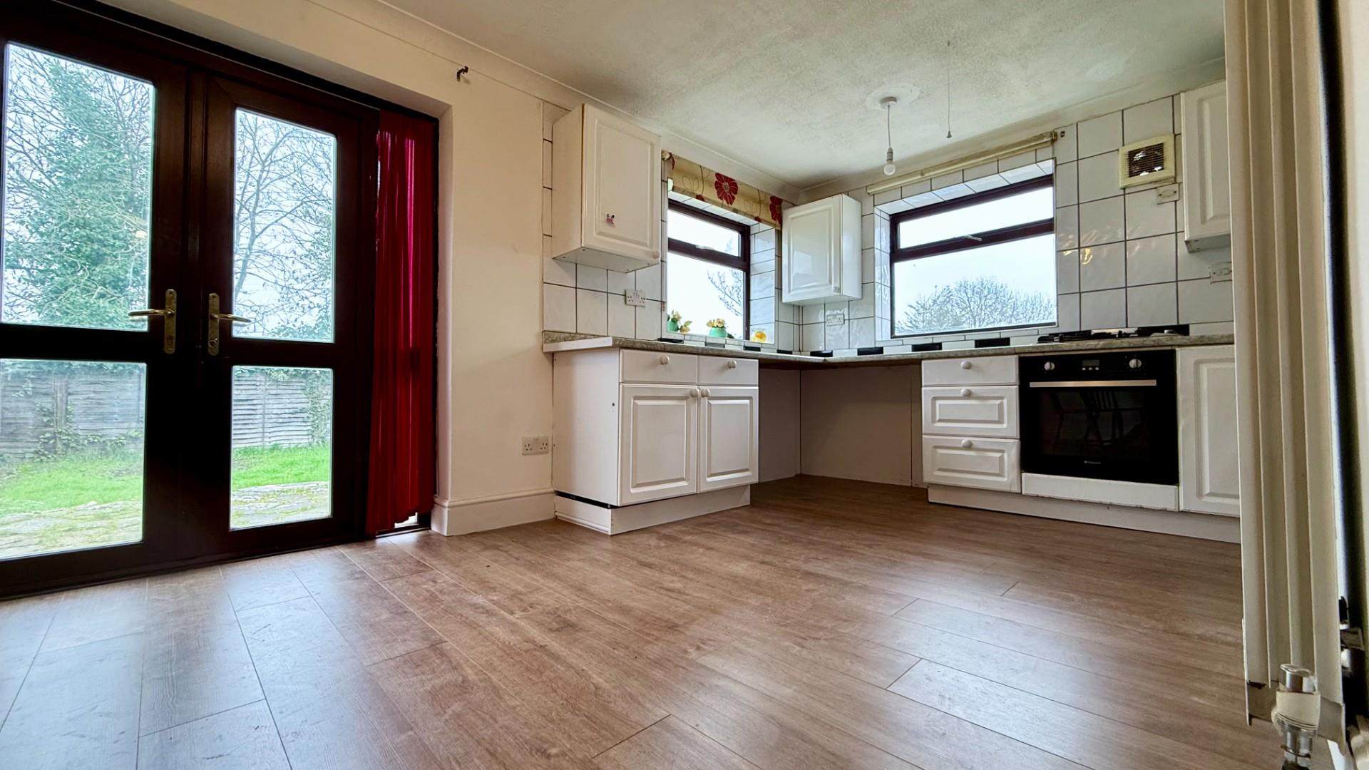 The ground floor offers two generous double bedrooms, a bright open-plan living and dining area, a fitted kitchen, a utility room and a separate WC. The layout provides flexible living space suitable for families or professional tenants.
