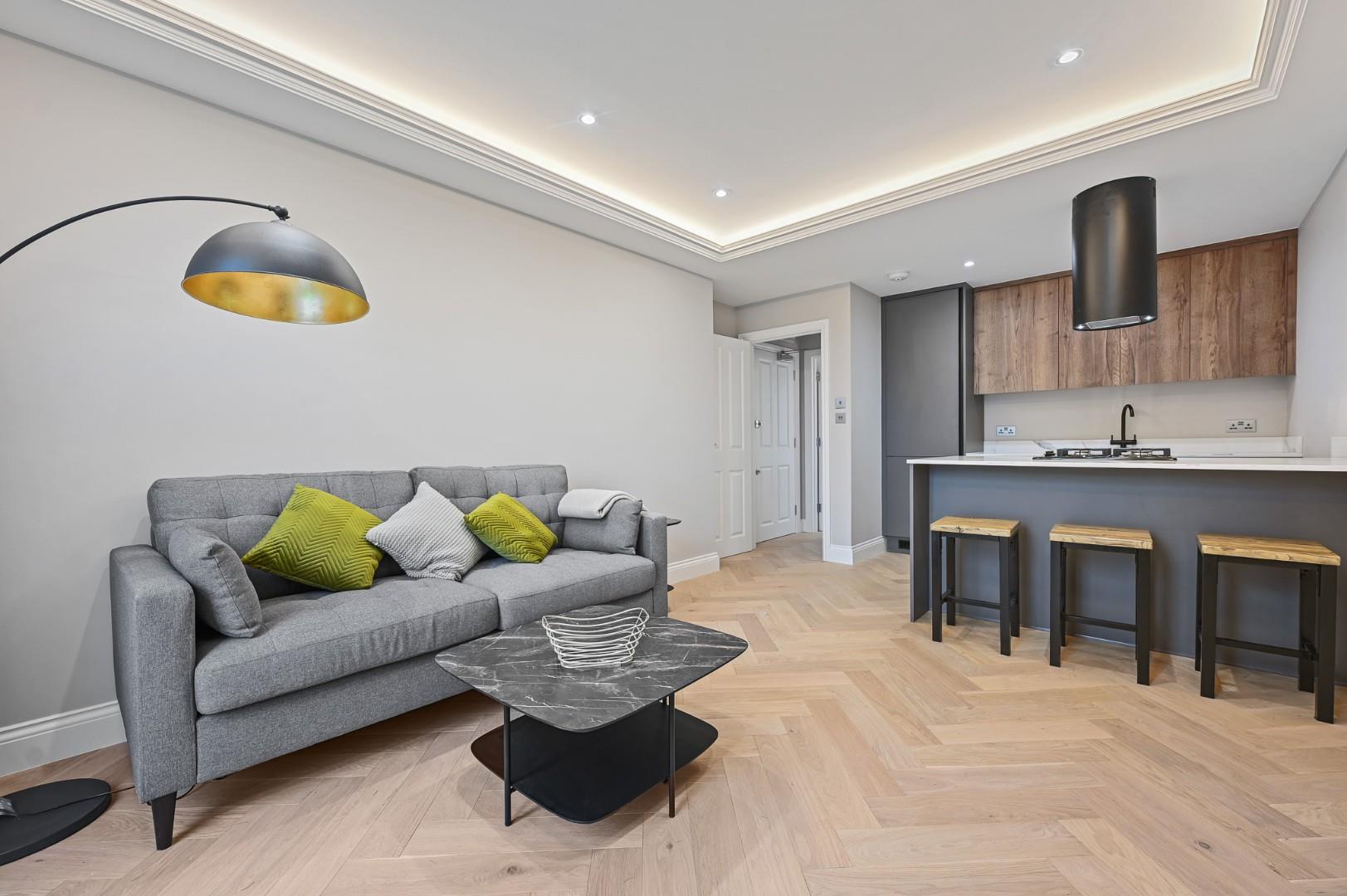 This brand-new, luxurious One Bedroom first floor apartment is ready to move in. It comes with a beautifully designed living space, featuring a generously sized double bedroom. At the heart of the home lies a bright and spacious, open-plan kitchen, dining, and living, which leads out to a private terrace, ideal for relaxing and entertaining.