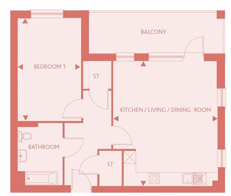 One bed ground floor apartment with parking of 678 square feet.
