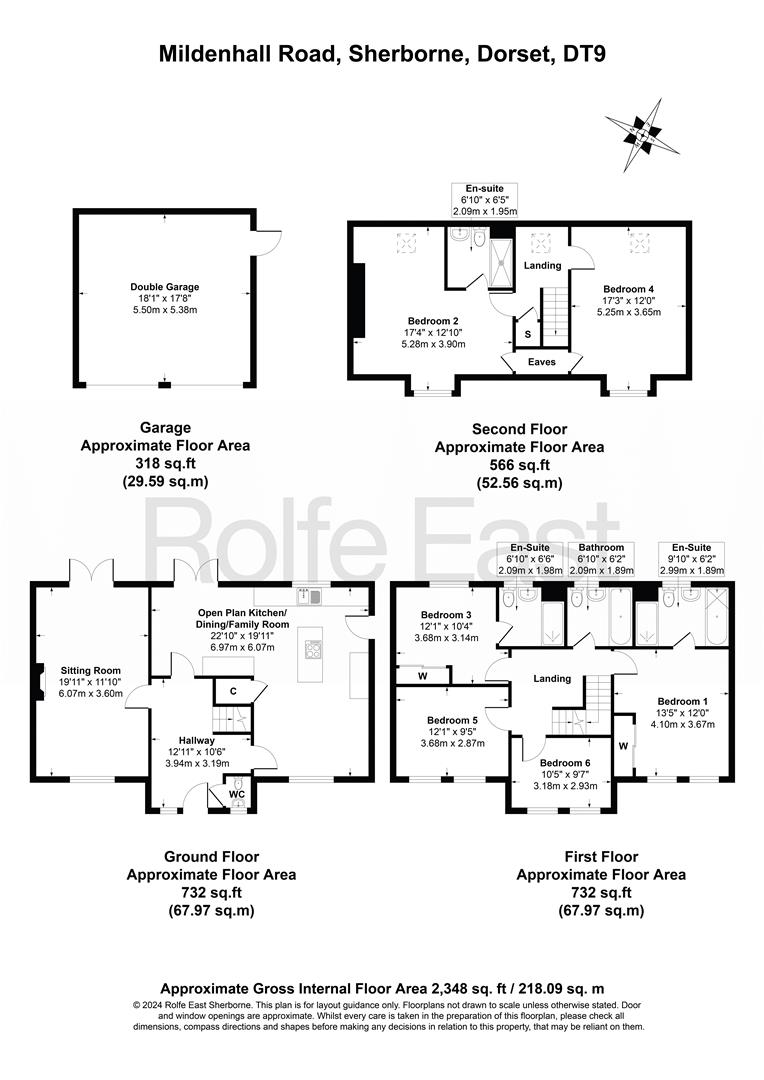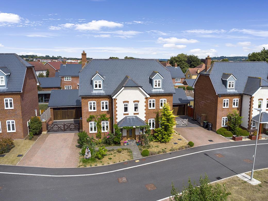 NO FURTHER CHAIN! SPACIOUS FLEXIBLE ACCOMMODATION! SUPERB EPC RATING – BAND B! A simply stunning, double-fronted, detached house (2348 square feet) boasting magnificent far-reaching countryside views at the front with a westerly aspect – enjoying many sunsets! This substantial 5-6 double bedroom home has a detached double garage and a gated private driveway providing off road parking for 4 cars or more. It boasts a level plot and large, lawned gardens extending to 0.12 acres approximately. The house is located in an exclusive, modern, residential cul-de-sac location amongst other high-end, executive homes built in 2020, off one of the top residential addresses in Sherborne – Bradford Road – historically known as ‘Millionaires Row’. There are countryside walks a short distance from the front door as well as being a short walk to Sherborne town centre and mainline railway station to London Waterloo. The house is finished to a high standard throughout and is heated by mains gas fired radiator central heating. It also benefits from a cast iron log burning stove and uPVC double glazing. It enjoys contemporary open-plan living with a huge open-plan kitchen family room opening on to the main rear garden. The property has an excellent level of natural light with dual and triple aspects letting in sunlight from a sunny west-to-east aspect. The well laid out accommodation is highly flexible and comprises entrance porch, entrance reception hall, sitting room, fantastic open-plan kitchen family room with dining area and snug area and cloakroom room / WC. On the first floor there is a large landing area, master bedroom with en-suite bathroom, second double bedroom with en-suite shower room, two further double bedrooms and a family bathroom, On the second floor, there is a landing area with small office space, fifth double bedroom with en-suite shower room and playroom reception room / sixth double bedroom. NO FURTHER CHAIN – MUST BE VIEWED!