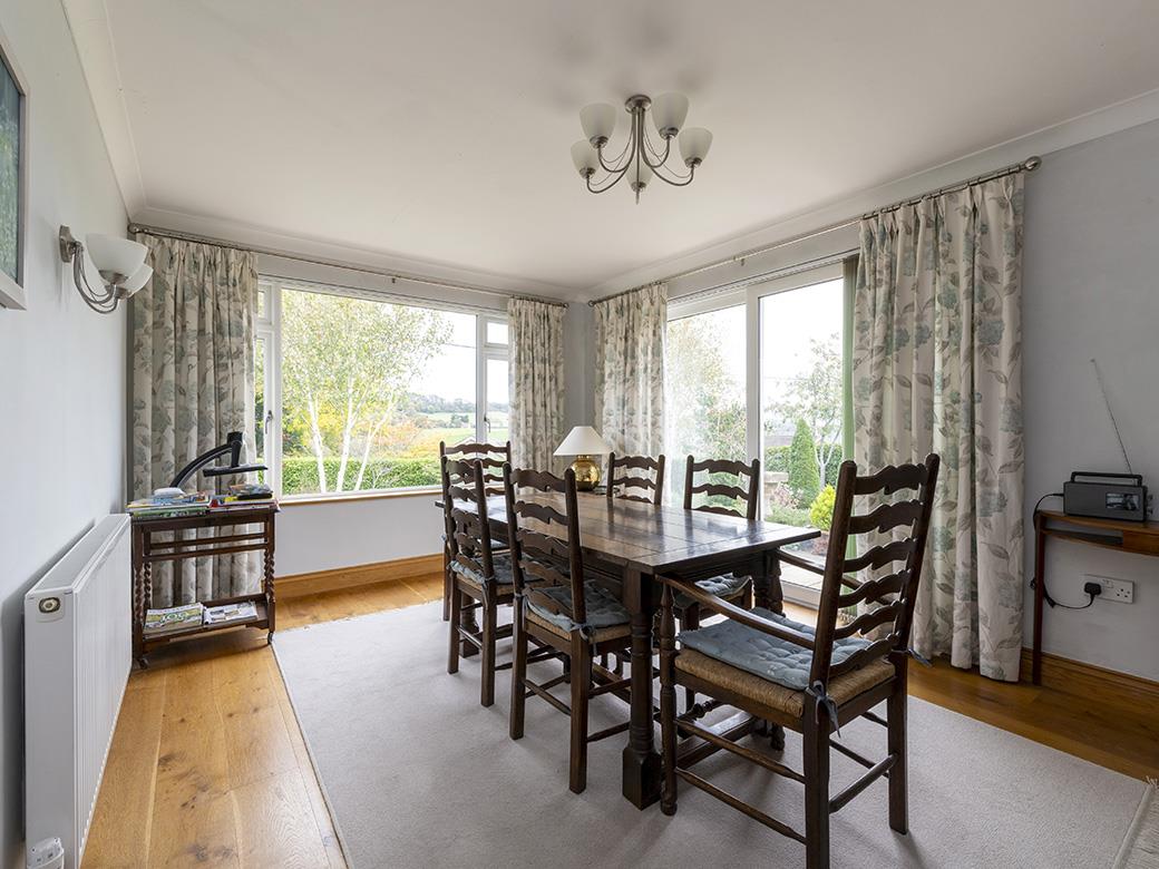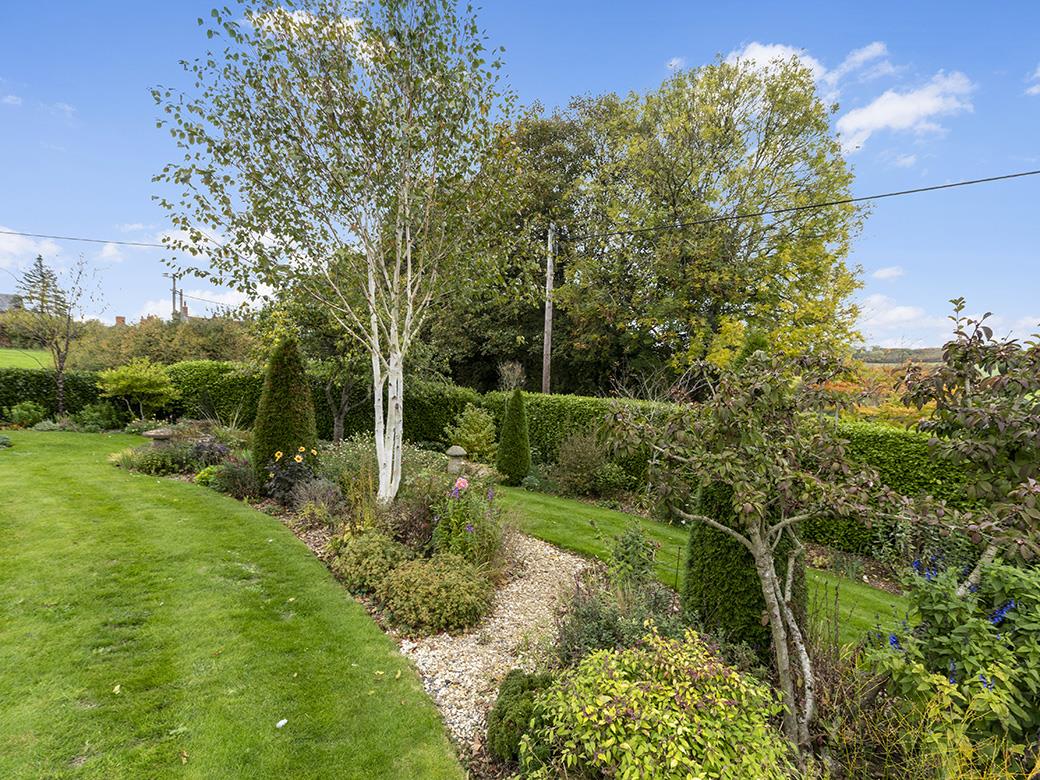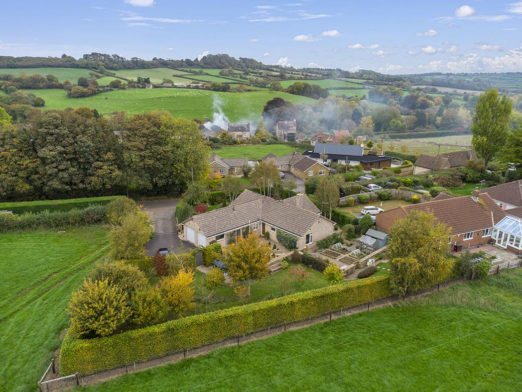 ‘Weston’ is a simply stunning, mature, detached bungalow, totally renovated by the present owners to a high standard, situated in a prime residential address a short walk to the heart of this popular village with a superb village pub and shop. The bungalow stands in an impressive plot and gardens extending to just under half an acre (0.39 acres approximately). The gardens are sublime and have been immaculately designed and groomed and are a fantastic feature, framed by a glorious rural backdrop and extensive views. With an Arboretum, wildflower area, vegetable garden and various patios, it really is the gardeners dream! There is ample driveway parking for four cars or more, leading to an attached double garage. There are country lane and village centre walks from the front door– ideal as you do not need to put the grand children or the dogs in the car! It is heated by an oil-fired radiator central heating system, a cast iron multi fuel burning stove and some electric under floor heating. It also benefits from uPVC double glazing. The current owner has finished the main property to a high standard throughout with sold oak floors, doors and architraves. The deceptively spacious accommodation enjoys excellent levels of natural light from a sunny east-to-west aspect and very large, feature windows. It briefly comprises entrance reception hall, sitting room, dining room, kitchen and utility room / rear lobby. There is an inner hall area, three double bedrooms, a family bathroom and separate shower room / WC. The property is very near the beating heart of this pretty, exclusive village. The village offers The Kings Arms, an award winning superb public house hotel offering great food and ambience. There is also The Village Store awarded a National Treasures Award by Good Housekeeping 2020, active village hall and community, attractive central village green, primary school and church.