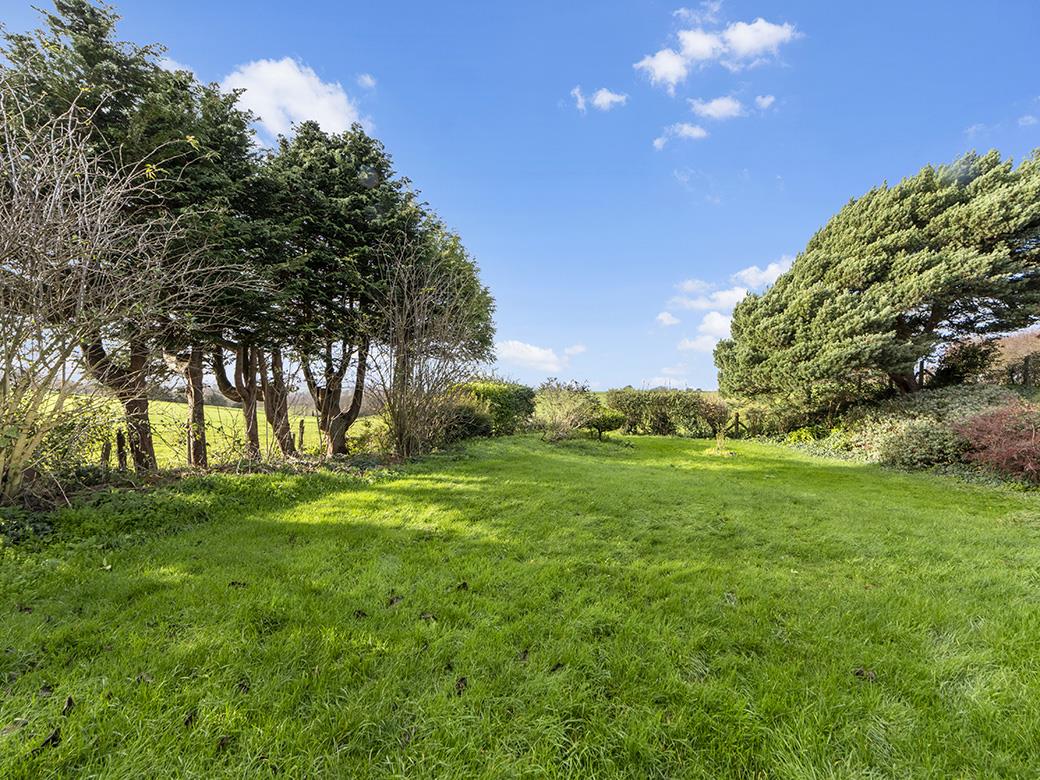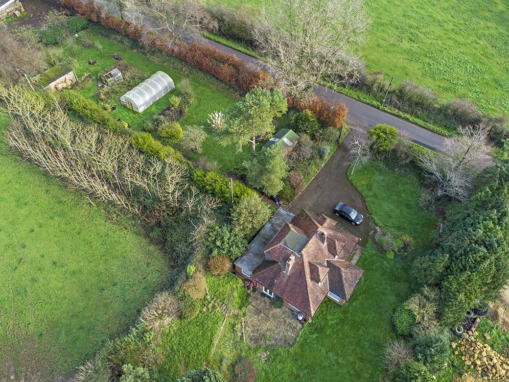 VACANT – NO FURTHER CHAIN. THREE QUARTERS OF AN ACRE! ‘Cortlands’ is a very well presented, mature, double-fronted, detached (2200 square feet) dormer bungalow standing in a generous plot and charming, level gardens extending to just under three quarter of an acre (0.72 acres approximately). The main rear garden boasts a sunny westerly aspect and outstanding countryside views, often framed by glorious sunsets. This huge garden also benefits from a second detached garage, large timber outbuilding, large polytunnel and former air raid shelter. The property is located in a very sought-after semi-rural address, a very short drive to Sherborne town centre and mainline railway station to London Waterloo. There are wonderful country lane walks from the front door. The bungalow boasts a private driveway providing off road parking for five to six cars leading to an attached one-and-a-half size garage. There is potential for more driveway parking, subject to the necessary planning permission. It is heated oil-fired radiator central heating via a Stanley Range, a cast iron log burning stove and open fireplace and benefits from uPVC double glazing. There are good levels of natural light from dual and triple aspects, large windows and a pleasant east-to-west aspect. The deceptively spacious, flexible accommodation comprises large entrance reception hall, sitting room, dining room / ground floor double bedroom four, open plan kitchen breakfast room and ground floor shower room / WC. On the first floor, there is a landing area, three generous double bedrooms and a family bathroom. This lovely home enjoys countryside walks not far from the front door – ideal as you do not have to put the dogs and the children in the car! We believe that the northern part of the garden (extending to just over a third of an acre) is a potential building plot (subject to the necessary planning permission).