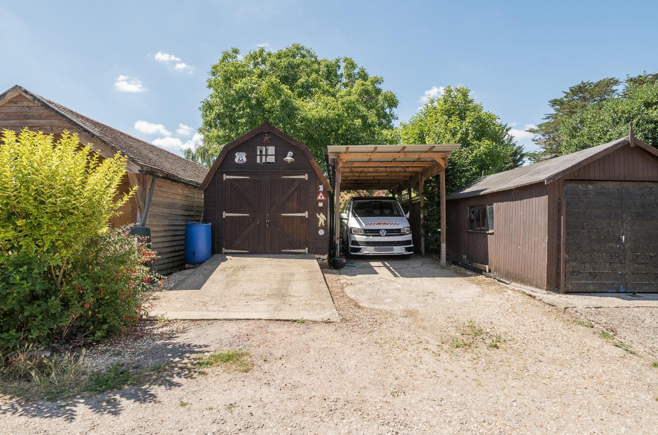 - LARGE BARN / WORKSHOP. TIMBER CABIN, FURTHER WORKSHOP AND GARDEN STORES.