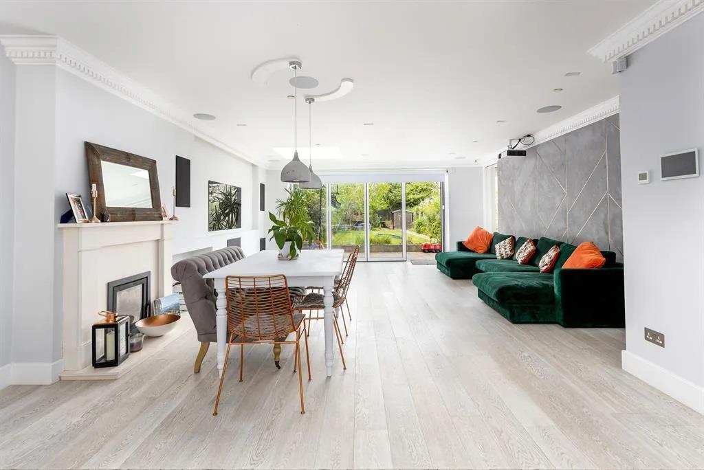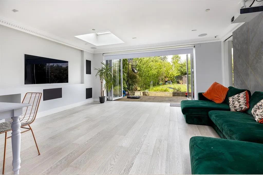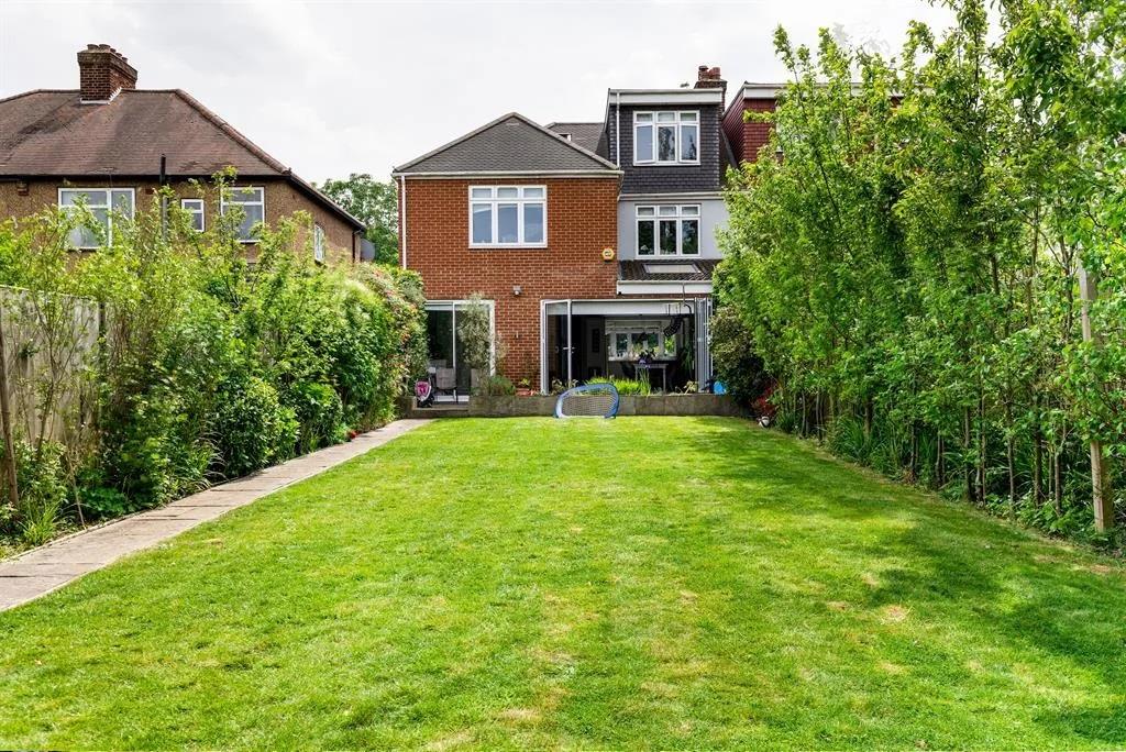 A quite beautifully presented, spacious, light and high-tech minimum five double bedroom, three bathroom family home with a huge private rear garden with a gym and gated multiple off street parking, situated in sought after Norwood Green.