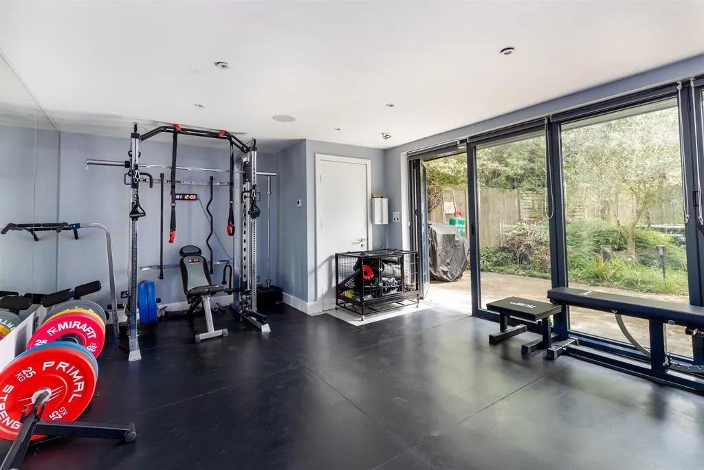 Outside, there is an amazing garden of approximately 140 ft, with a very well maintained lawn and an array of beautiful mature trees, plants and flowers. To the rear of the garden, there is a lovely little footbridge leading over a pond which then leads directly to an impressive home gym, with its own bi-folding doors, underfloor heating and WC, so this could also be used as further guest accommodation or even as a large office, games room, bar or workshop!