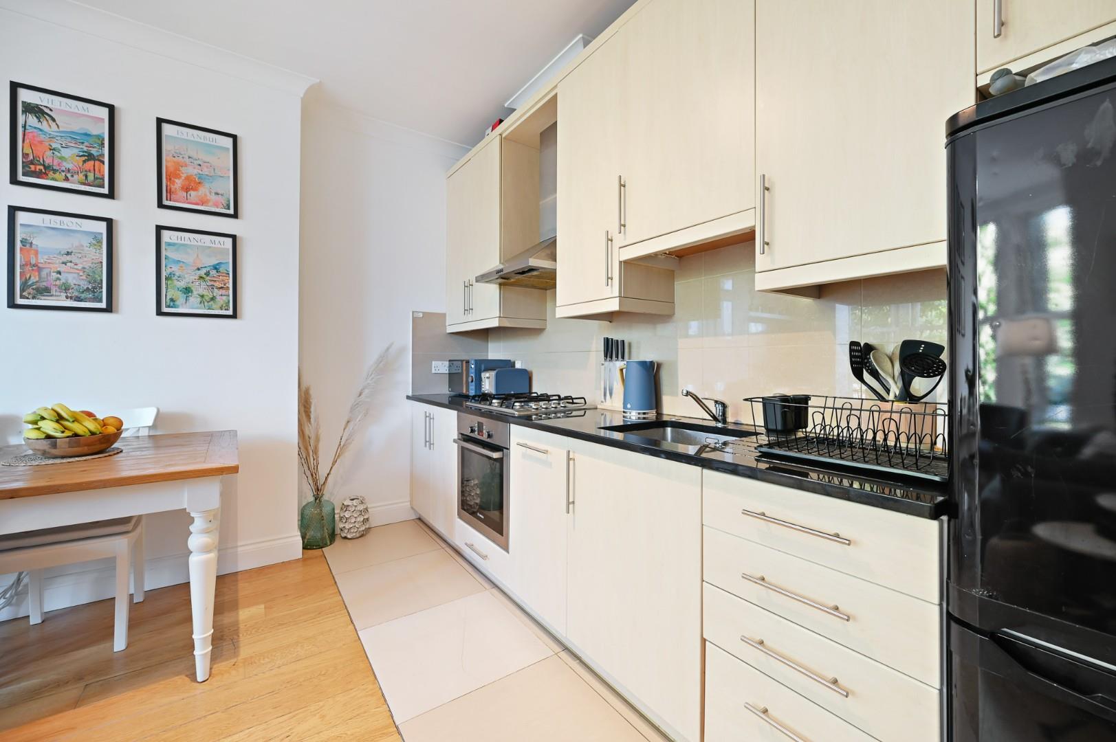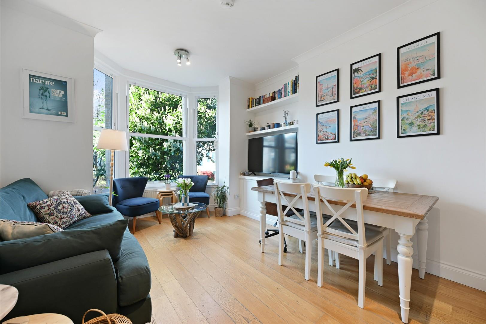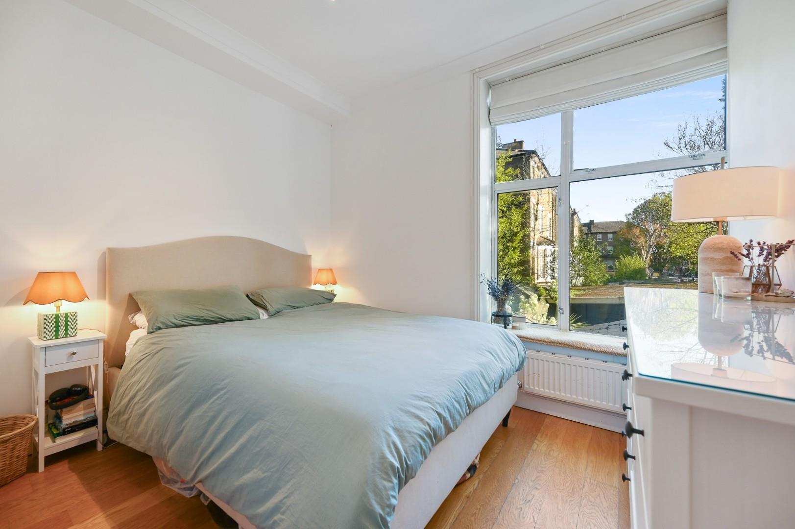 A bright and beautifully presented two double bedroom flat located on the raised ground floor of this handsome period building. Featuring high ceilings throughout giving a great sense of space the property benefits from wood flooring, fitted wardrobes, luxury kitchen, and fully tiled shower room. Sold with no upper chain.