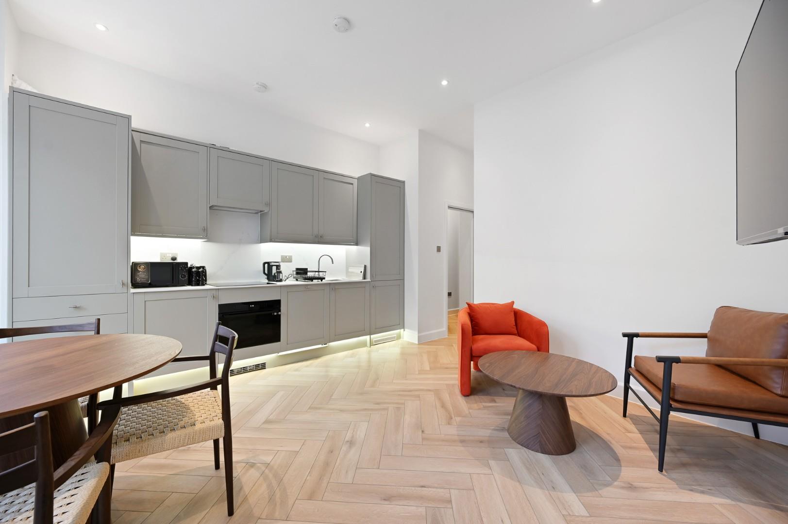 A beautifully refurbished two-bedroom apartment, finished to an exceptional standard and offering a sophisticated blend of contemporary design and timeless elegance. The property features a newly fitted kitchen, two luxurious modern bathrooms, and exquisite parquet flooring throughout, creating a refined and cohesive living environment.