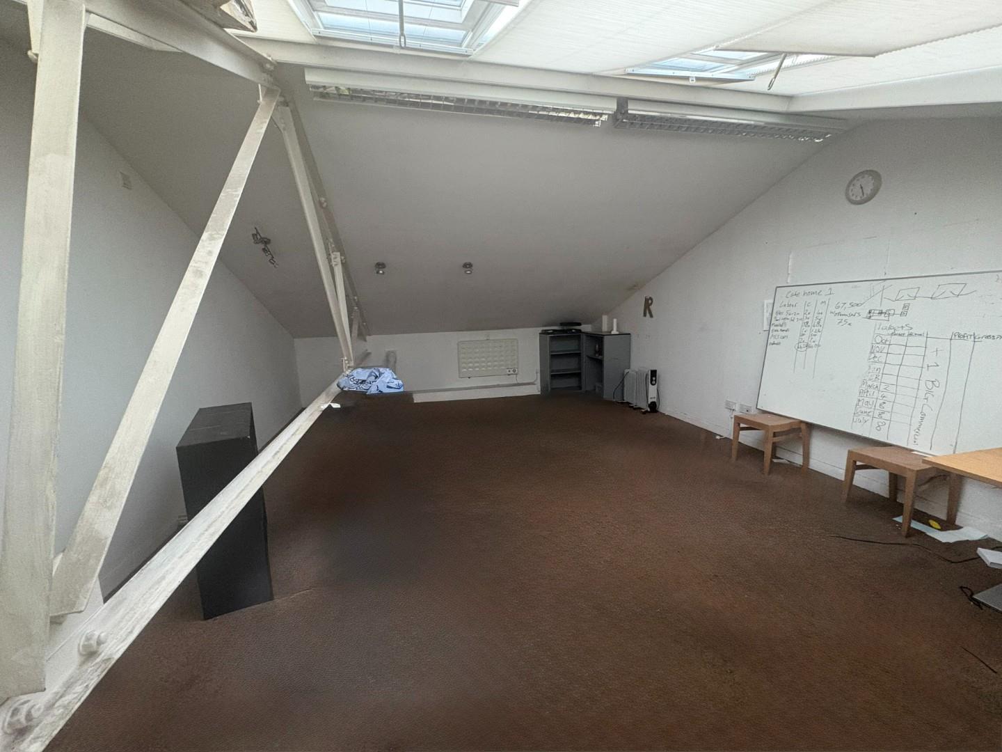 Internally, the property includes ancillary office space, a kitchenette, and WC facilities, offering a functional setup for day-to-day business operations. The space is well-lit throughout with roof lights and strip lighting.