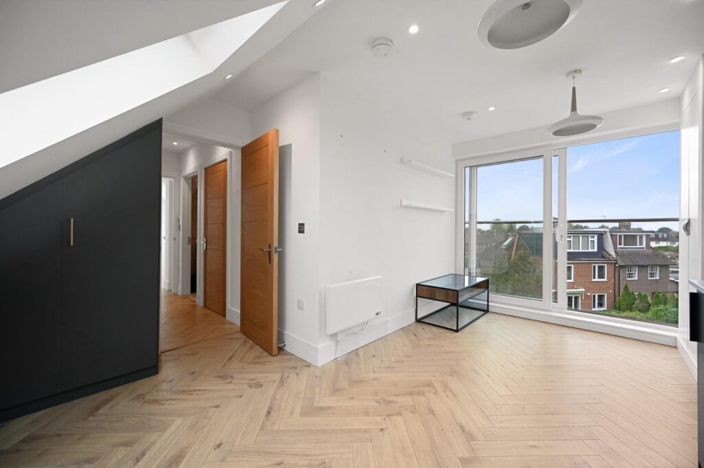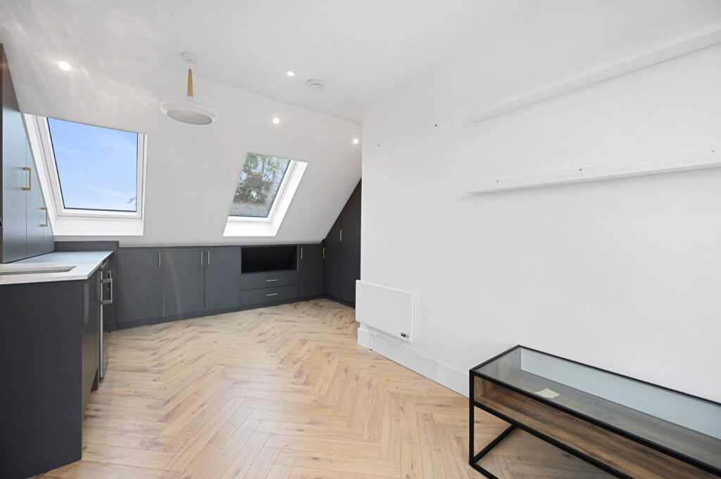 A stunning top floor apartment located in a sought after tree lined address in W3. This property offers a luxury finish throughout, with clever new bespoke storage throughout, a open plan bespoke kitchen living space benefiting from high quality integrated appliances, stone worktops and herringbone flooring, and a luxury bathroom with underfloor heating. The property also comes with a new build warranty, enjoys plenty of natural light with its southernly aspect, double-glazed windows and a sperate utility room.